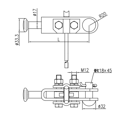 接地线夹及连接装置主要包括接地线夹、 接地连接线夹、 接地线钩螺栓和接地跳线固定板, 主要用于接触网接地装置中固定接地线, 连接接地线与钢轨的接地线夹及连接装置。