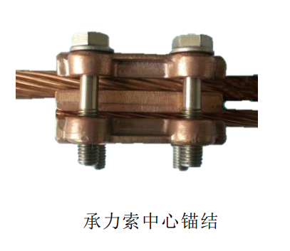 装置组成: 接触线中心锚结线夹、 承力索中心锚结线夹、 锚结绳。
