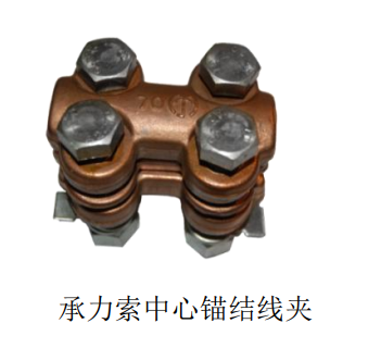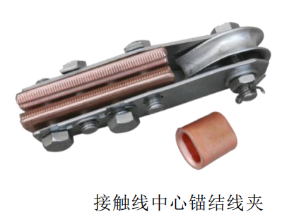 应用范围: 接触线中心锚结线夹用于接触线中心锚结绳与接触线之间的连接固定; 承力索中心锚结线夹用于承力索与接触线中心锚结绳、 承力索与承力索中心锚结绳之间的连接固定。